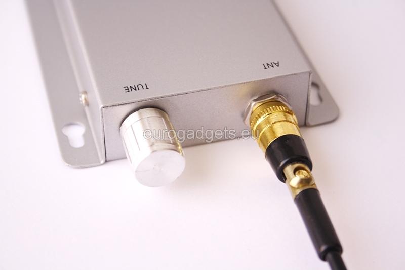 With this kit you can conduct video surveillance in the less congested frequency band of 1.2 GHz. Withing direct line of sight from 50-60 meters you can count on good picture and sound. The receiver is plugged into an external monitor (TV), and you can watch and listen to the signal transmitted by the camera.The frequency adjustment is finely tuned by rotating the potentiometer on the receiver. Both devices are powered by the adapter, but the camera has a cable that allows you to connect it to a 9V battery.