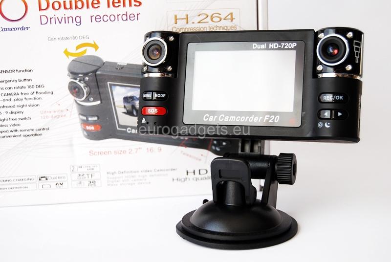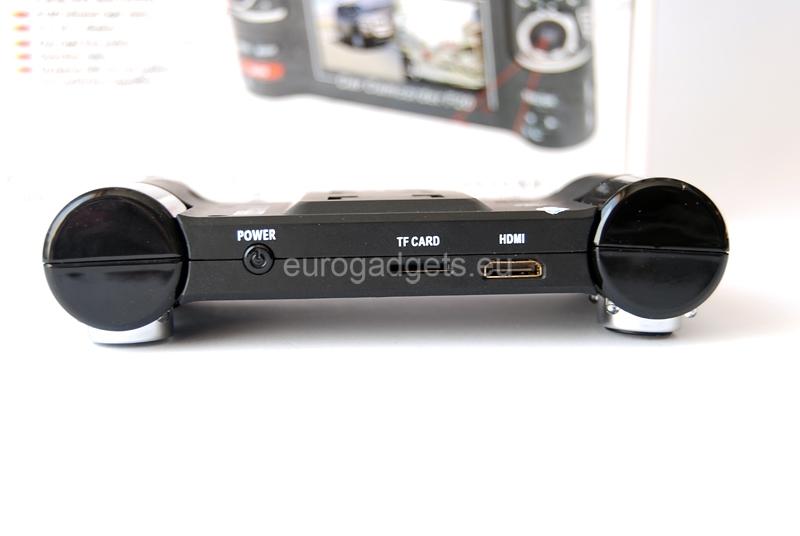 To capture your master driving have two cameras that can rotate horizontally 180 degrees and an angle of view of 120 degrees. One of the cameras is a digital zoom. The signal from the two cameras you can simultaneously watch the large 2.7 inch 16:9 screen. You can shoot in the dark, each camera has four IR LEDs and their activation is only the touch of a button.